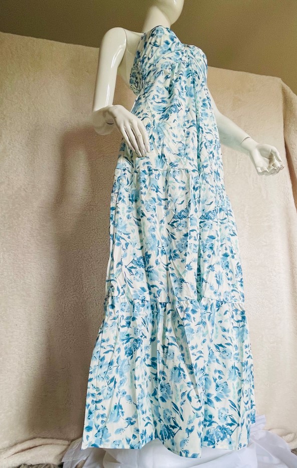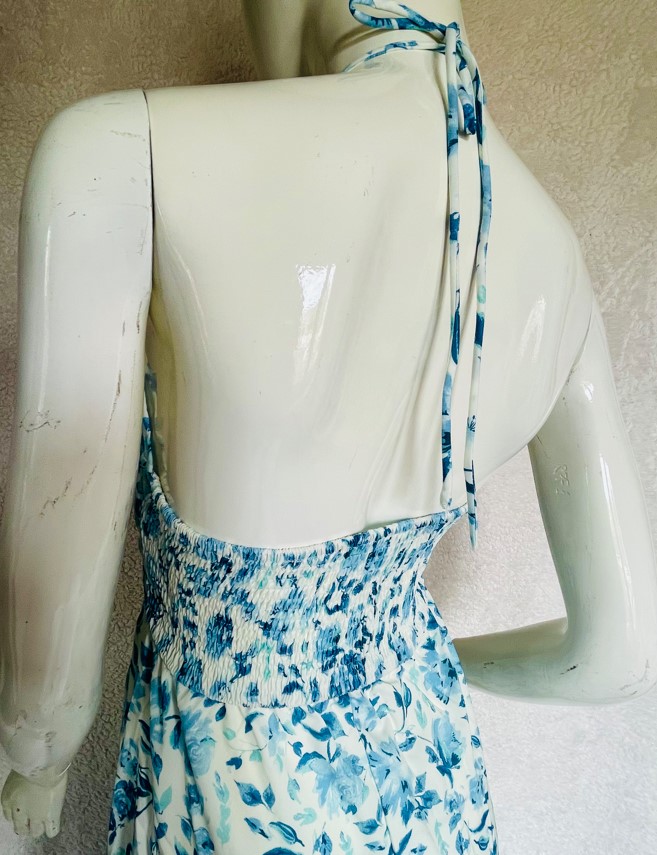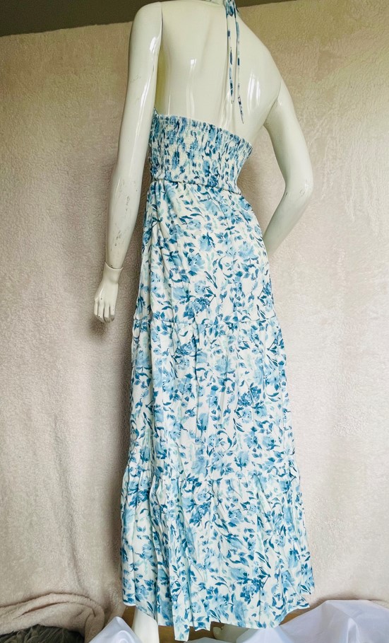 Woman’s floral print halter neck, sleeveless and backless maxi/summer dress